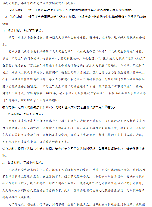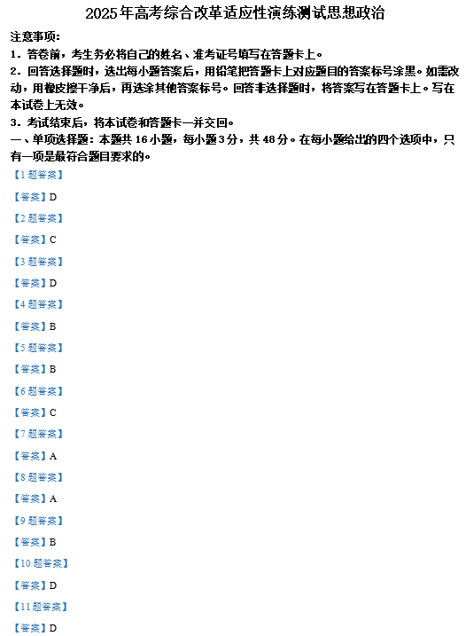 四川2025年高考综合改革适应性演练政治试题及答案