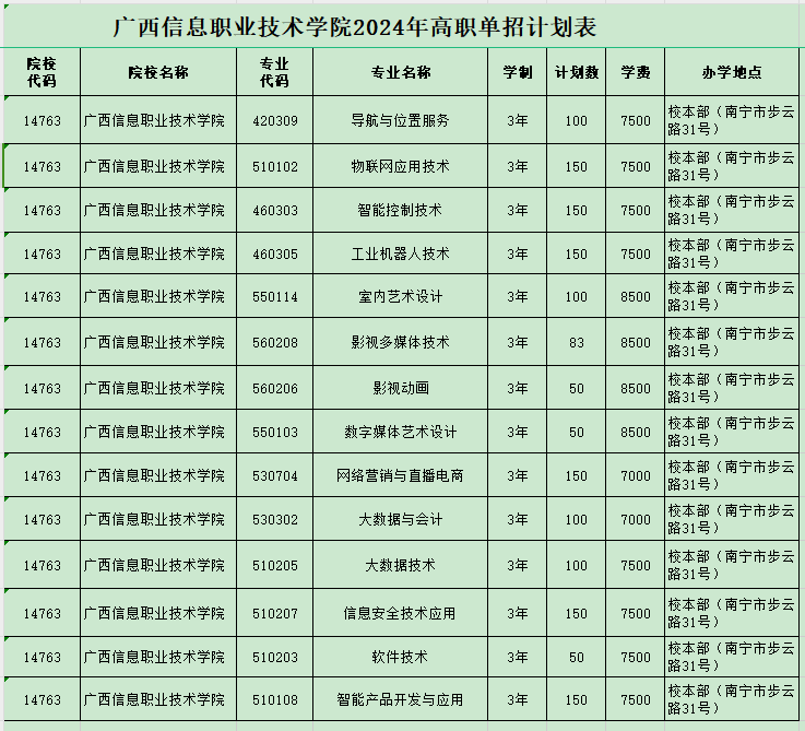 广西信息职业技术学院2024年高职单招计划表.xlsx