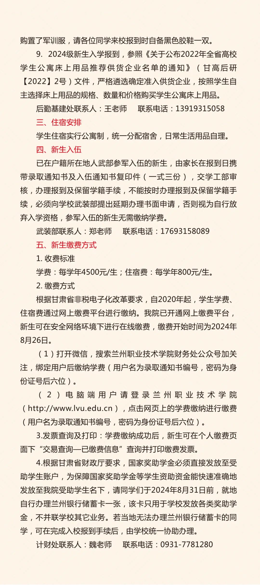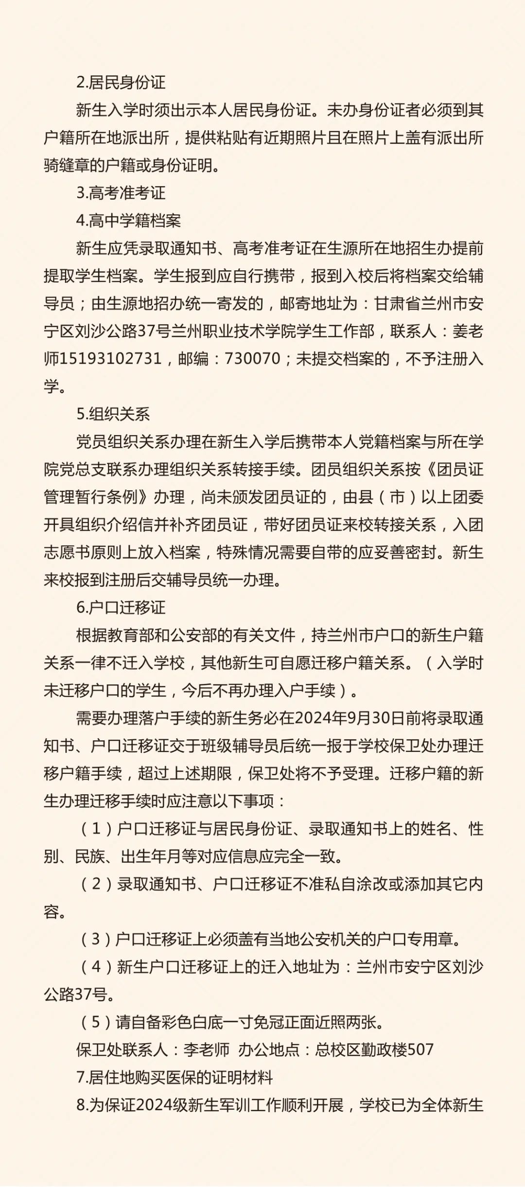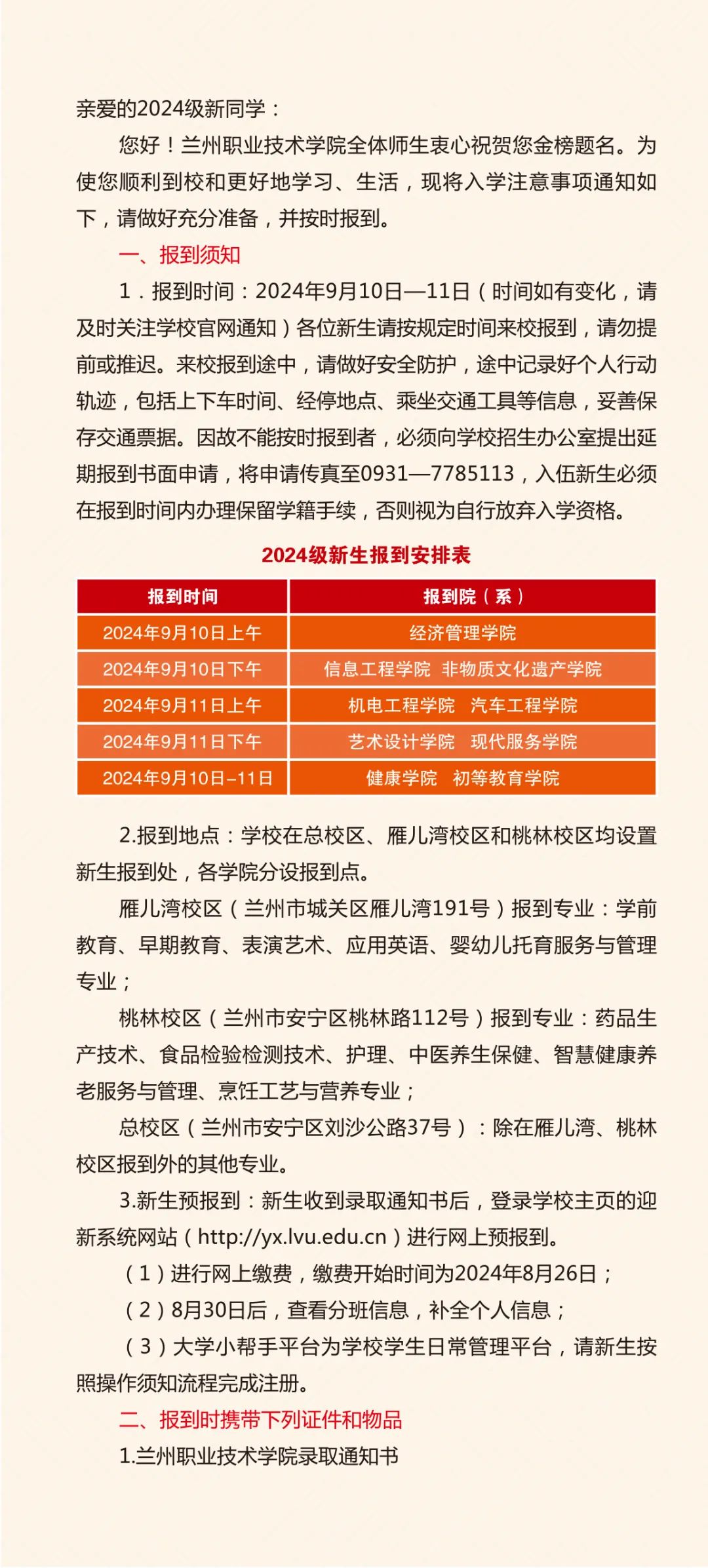 @兰职新生,兰州职业技术学院2024年新生入学须知请查收~