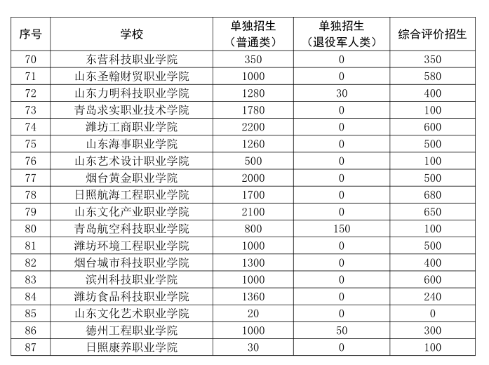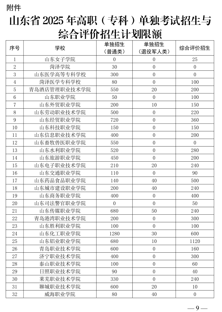 根据《山东省人民政府办公厅关于印发山东省深化高等学校考试招生综合改革试点方案的通知》(鲁政办发〔2018〕11号)、《山东省教育厅关于进一步完善职业教育考试招生制度的意见》(鲁教学字〔2019〕7号)等文件精神,现就做好2025年高职(专科)单独考试招生和综合评价招生工作通知如下:一、招生对象和计划安排