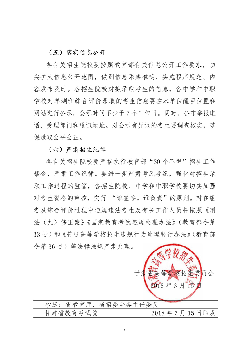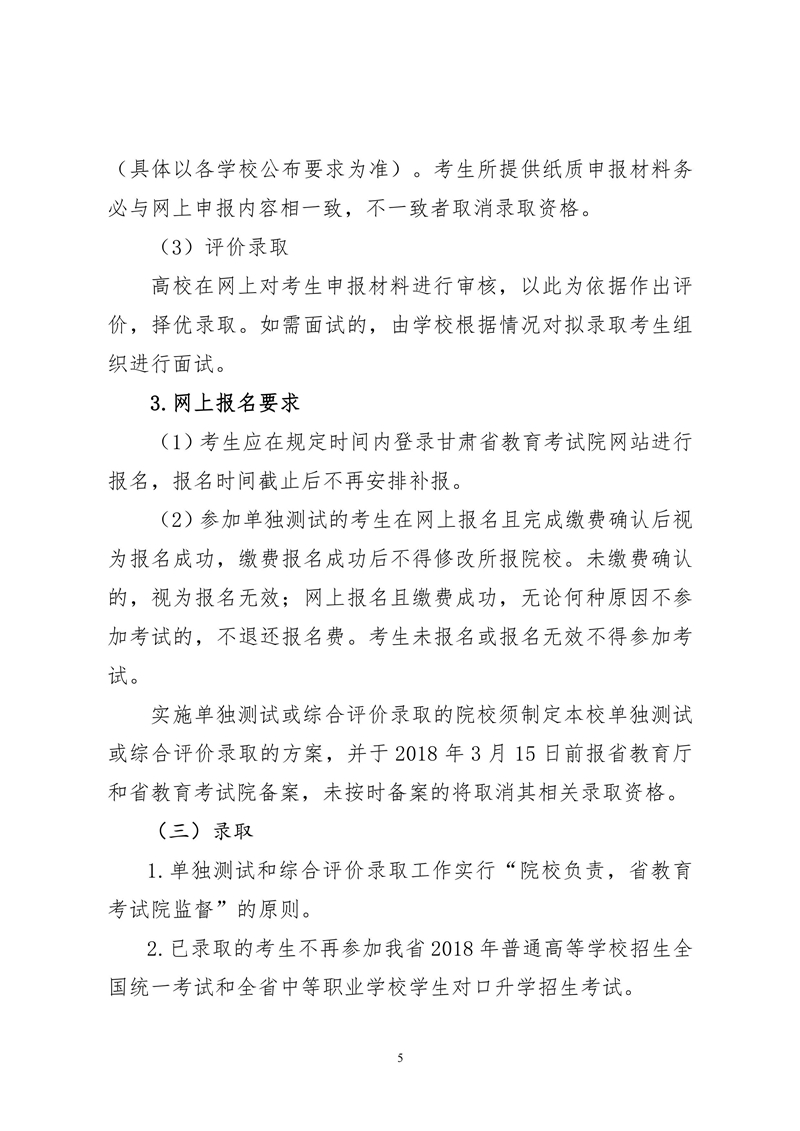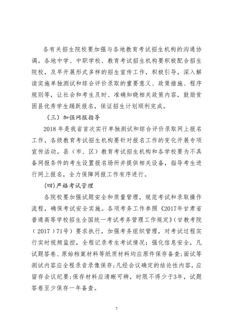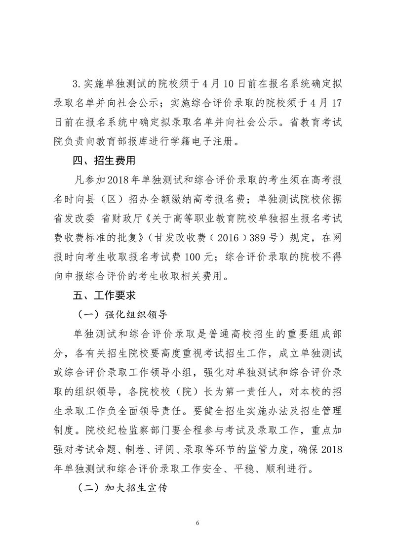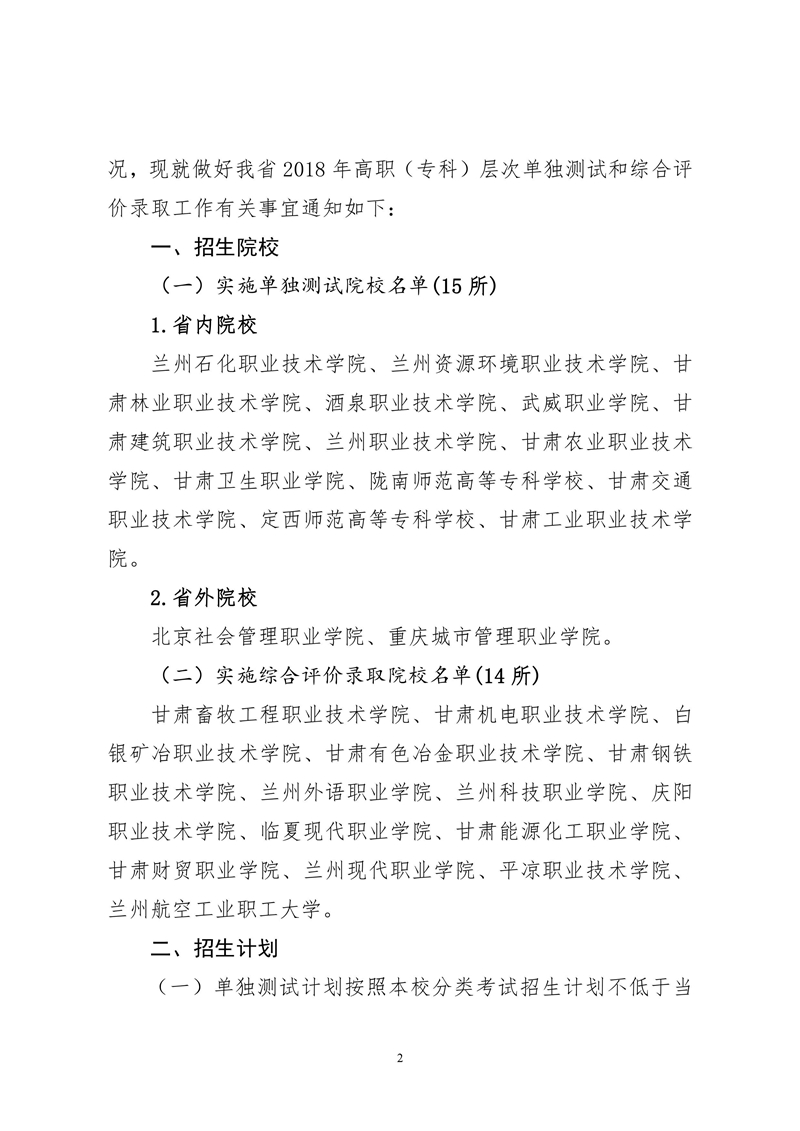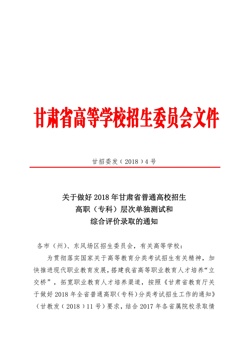 关于做好2018年甘肃省普通高校招生高职(专科)层次单独测试和综合评价录取的通知