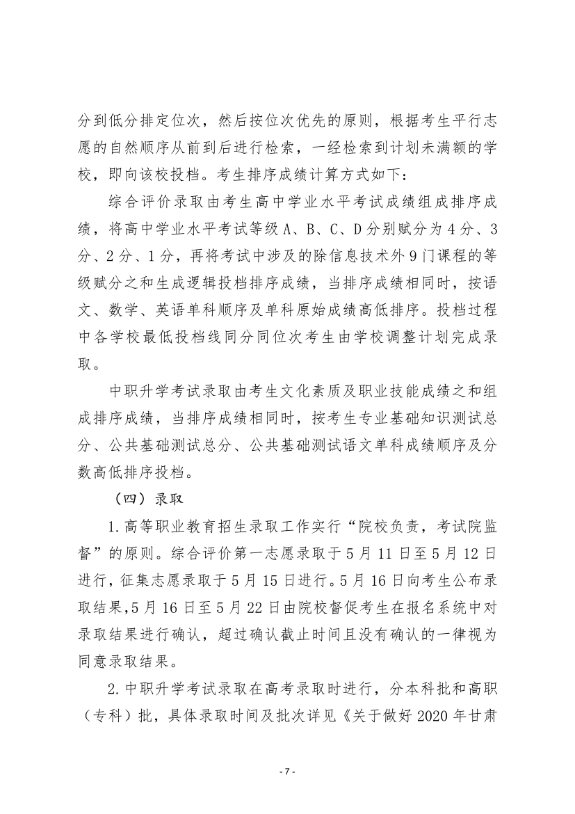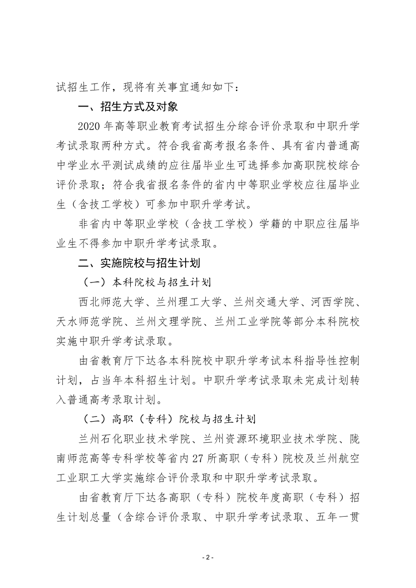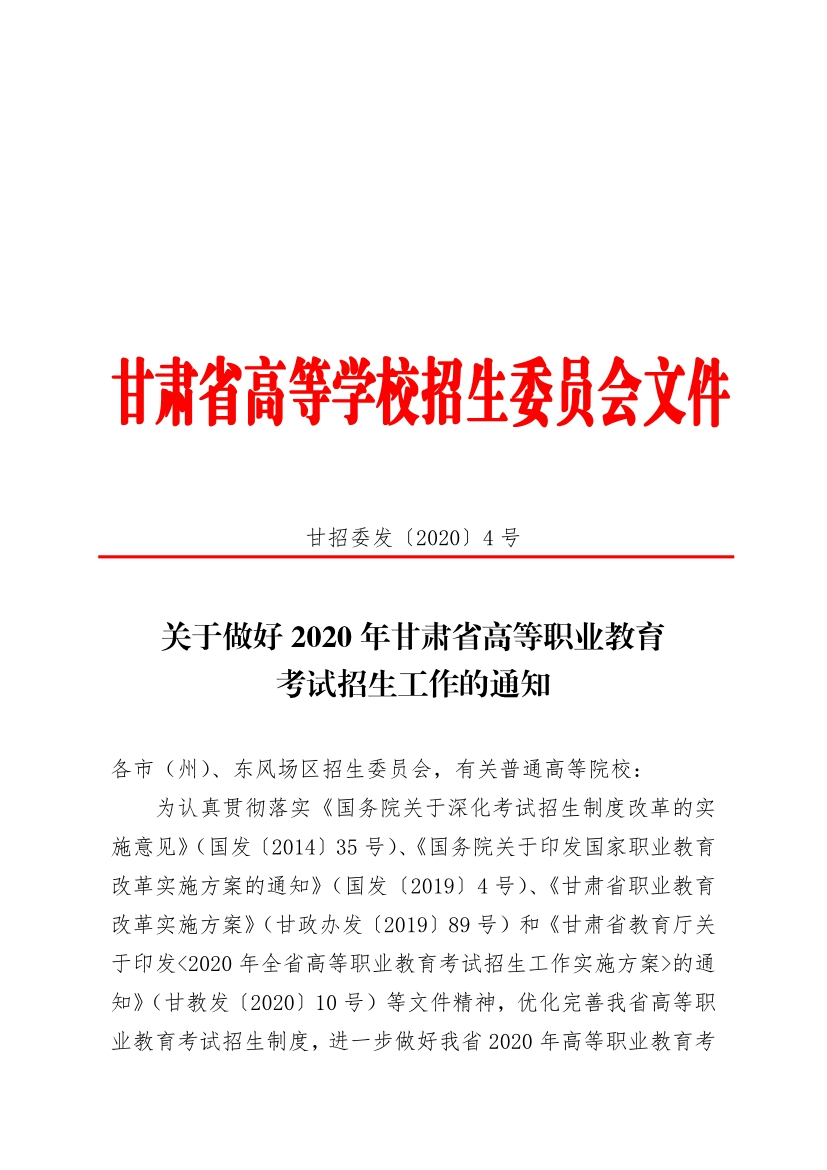关于做好2020年甘肃省高等职业教育考试招生工作的通知