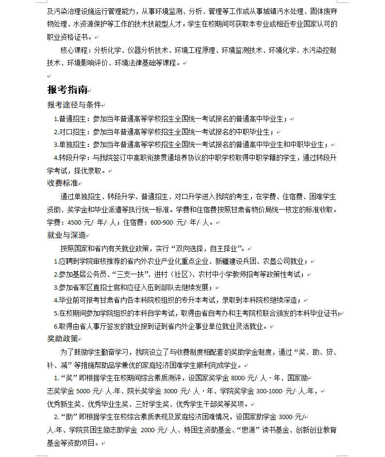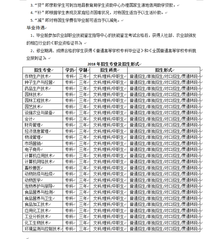 甘肃农业职业技术学院2018年招生简章