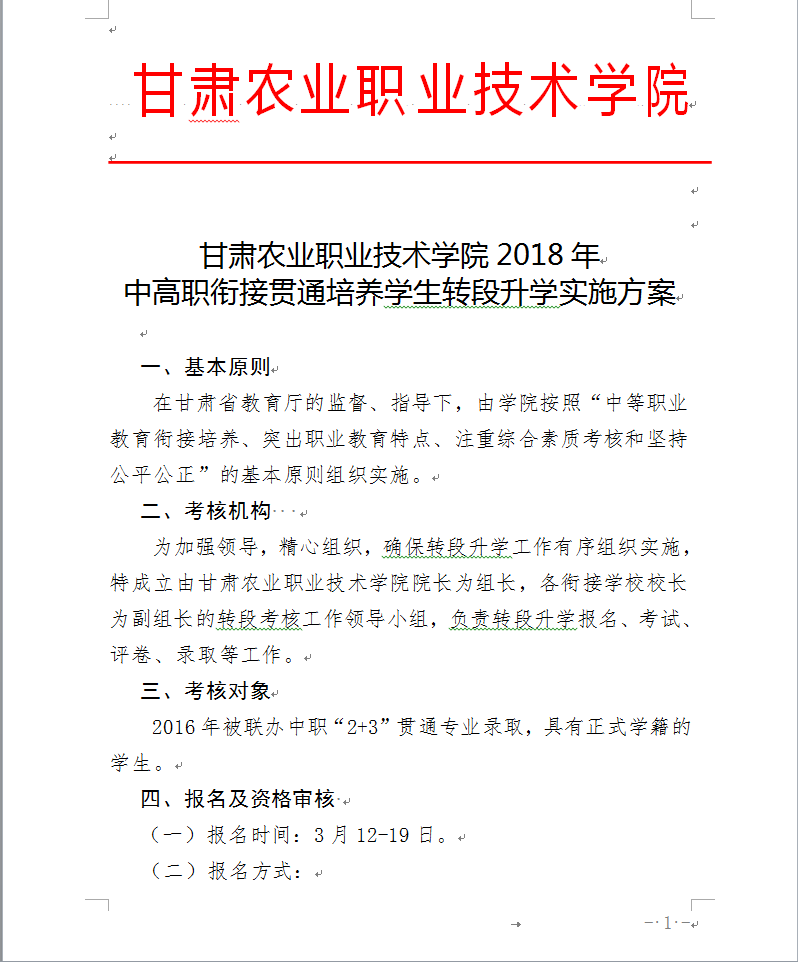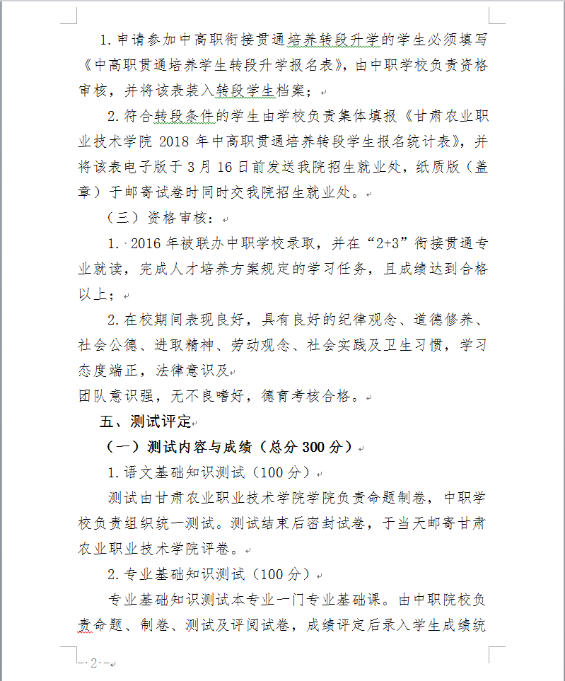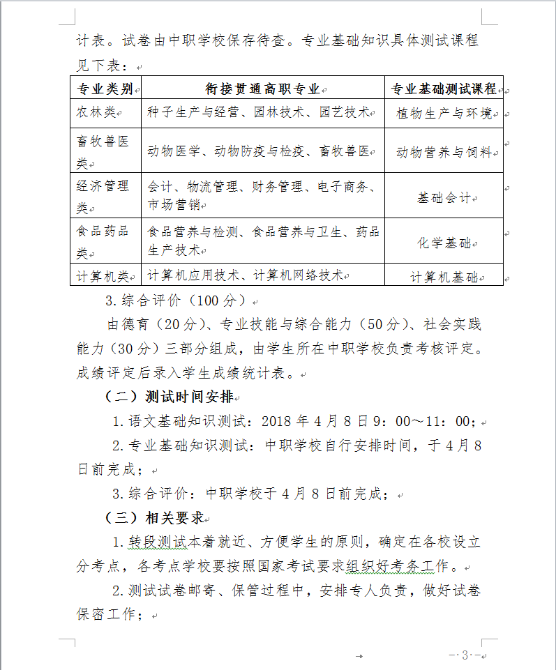 2018年中高职衔接贯通培养学生转段升学实施方案