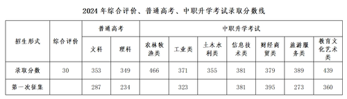 2024年综合评价、普通高考、中职升学考试录取分数线