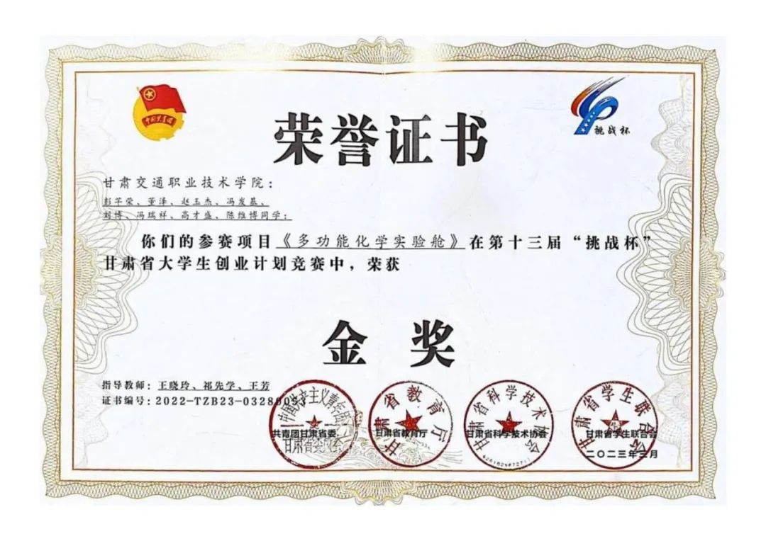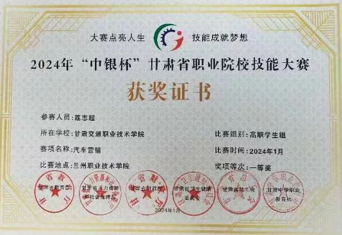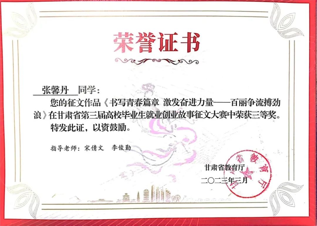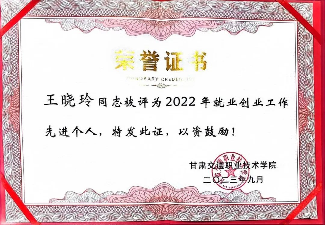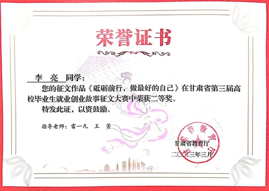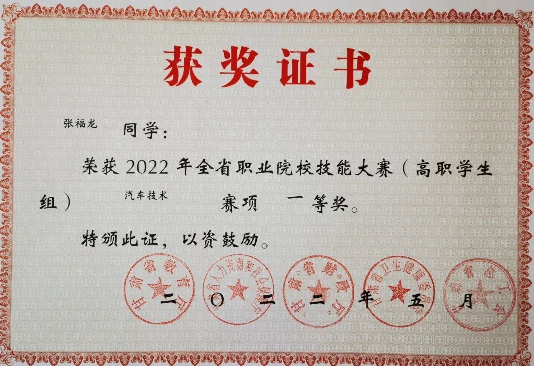 2022届汽车检测与维修技术毕业生,中共党员。在校期间,担任社团工作管理部分管主席,学习委员等职务。荣获“国家励志奖学金”、“第十三届挑战杯甘肃省大学生课外学术科技作品一等奖”、“甘肃省高校优秀毕业生”等荣誉。2022年9月,升学至兰州理工大学,就读于电气工程及其自动化专业。2024年6月,本科毕业,入职甘肃省电力投资集团有限责任公司。