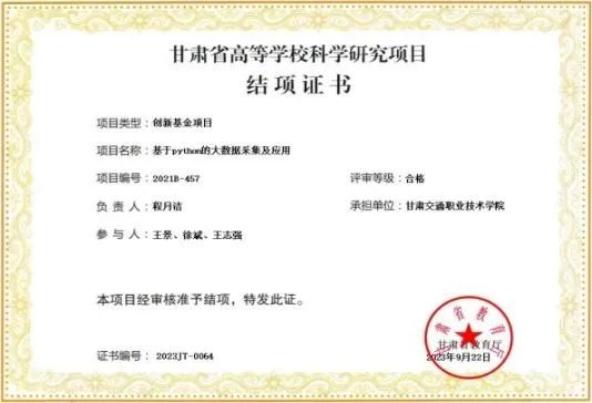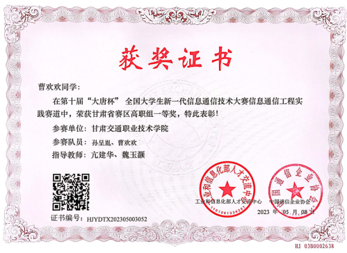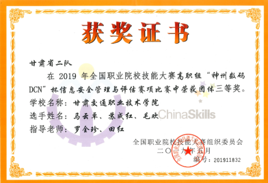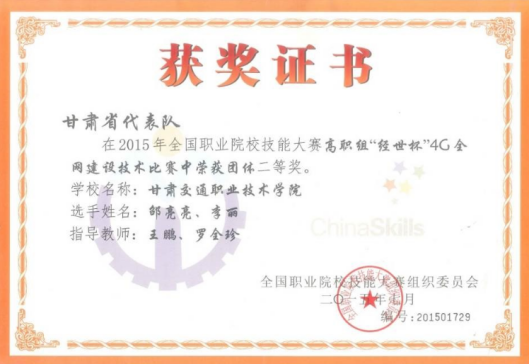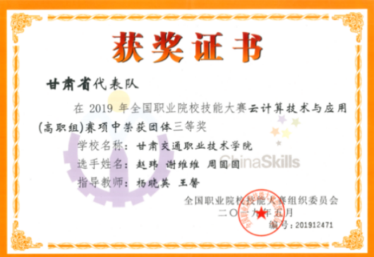 甘肃省高水平专业群——计算机网络技术专业群国家级专业教学资源库——铁道通信与信息化技术国家级骨干专业——计算机网络技术国家级协同创新中心——智能交通技术运用协同创新中心全国首批十家“教育部-中兴通讯ICT行业创新基地”甘肃省网络空间安全创新人才培养基地甘肃省高等学校实验教学示范中心——ICT创新实践基地甘肃省职业院校应用技术协同创新中心——网络空间安全应用技术协同创新中心甘肃省高等学校特色专业——计算机网络技术甘肃省职业教育骨干专业——计算机网络技术、现代通信技术甘肃省职业教育“课程思政”示范专业——计算机网络技术院级特色专业——智能交通技术甘肃省高等学校教学团队——计算机网络技术教学团队甘肃省职业教育教师教学创新团队——计算机网络技术创新教学团队、现代通信技术创新教学团队甘肃省职业教育名师工作室——吴春兰工作室、李迎国工作室院级教学团队——计算机应用技术教学团队甘肃省“技术标兵”4人学生参加国家级竞赛获特等奖1项,二等奖2项,三等奖7项。