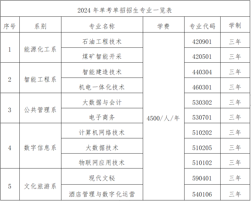 收费标准学费4500元/生/年,住宿费8人间800元/生/年。退役军人学费补偿按国家和省上相关政策要求执行。其他代收费项目及标准,按照教学需要另行通知。