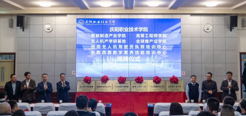 近年来,庆阳职业技术学院聚焦服务“东数西算”国家战略,紧盯市委、市政府打造“四千四百”产业链发展定位,主动适应行业产业发展需求,不断加强数字经济、低空经济专业建设。通过持续加大招商引资力度,深化“三教改革”和社会培训,创新校企合作模式等,服务全市经济社会高质量发展。先后与引进的高新技术企业深圳市汇川技术股份有限公司、杭州喜马拉雅信息科技有限公司、武汉华中数控股份有限公司、全球鹰(深圳)无人机有限公司、逻思智造(西安)科技有限公司、东软教育科技集团、北京新大陆时代科技有限公司等,合作共建智能制造产业学院、高等工程师学院、无人机产学研基地、民用无人机驾驶员执照培训中心、东数西算数字素养技能培训中心、全球鹰产业学院、东软数智产业学院、新大陆物联网产业学院,通过创新管理机制、优化人才培养模式、推动应用技术创新、提升社会服务能力等,培养新兴产业发展所需的高素质技术技能人才,助力全市数字经济、低空经济产业快速发展。