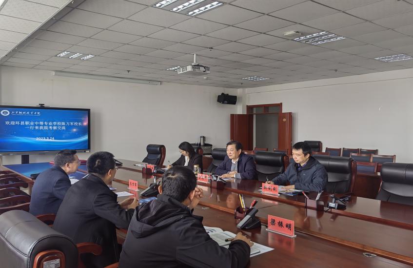 3月24 日上午,环县职业中等专业学校校长陈万军一行4人来我院考察调研,洽谈联合办学事宜,学院院长雷志辉、学院党委委员、副院长汪梅芳及招生就业工作处工作人员陪同调研。