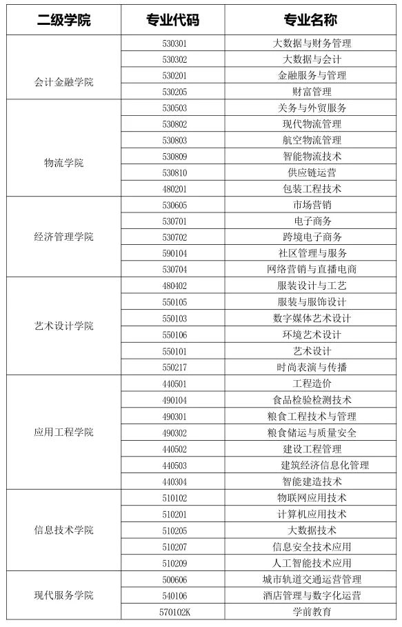 学院设有会计金融、物流、经济管理、艺术设计、应用工程、信息技术、现代服务、公共课教学部、体育教学部和马克思主义学院等10个教学部门,现有教职工896人,其中教授34人(二级教授2人)、副教授195人、研究生以上学历256人、“双师型”教师263人,。有各类在册学生18706人(其中高职17490人、中职1216人),22级、23级现在校学生共11886人,21级实习学生5387人。