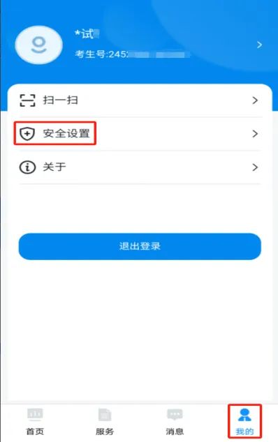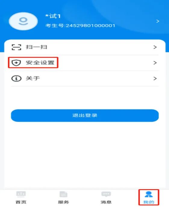 若考生遗忘系统登录密码,可选择【刷脸登录】或【短信验证码登录】方式登录后,通过手机右下角【我的】→【安全设置】→【密码修改】功能,修改登录密码。