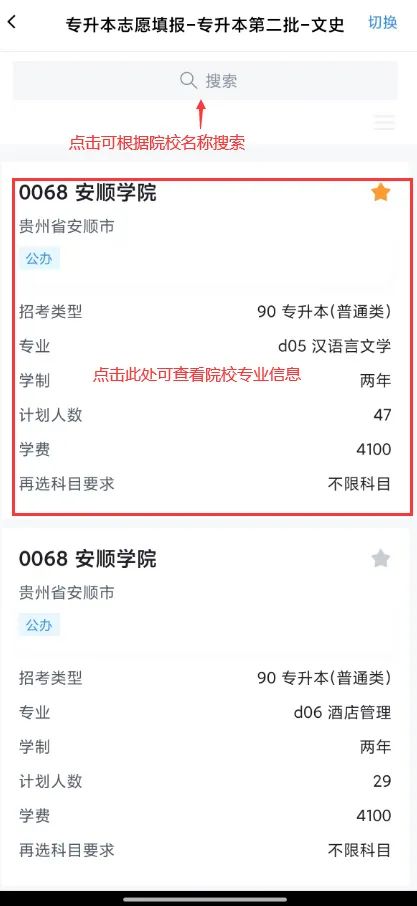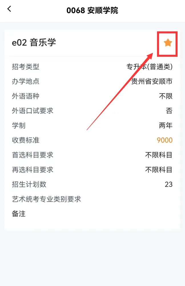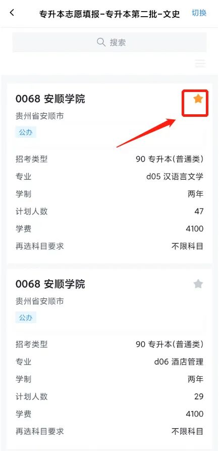 考生如想收藏某院校专业,可通过点击院校名称后★进行收藏。
