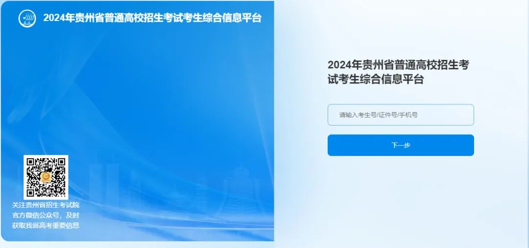 考生在手机上打开【贵州招考】APP,输入本人考生号或证件号或手机号,选择【我已阅读并同意《隐私政策》】,点击下一步。
