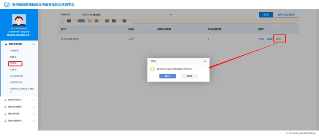 (3)志愿草稿删除
