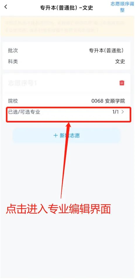 1、我省专升本设置三个批次志愿,每个批次考生只能填报1所院校的1个专业志愿。