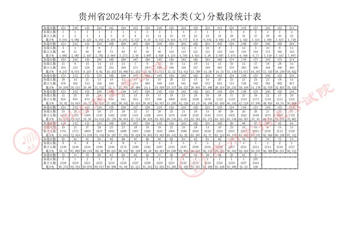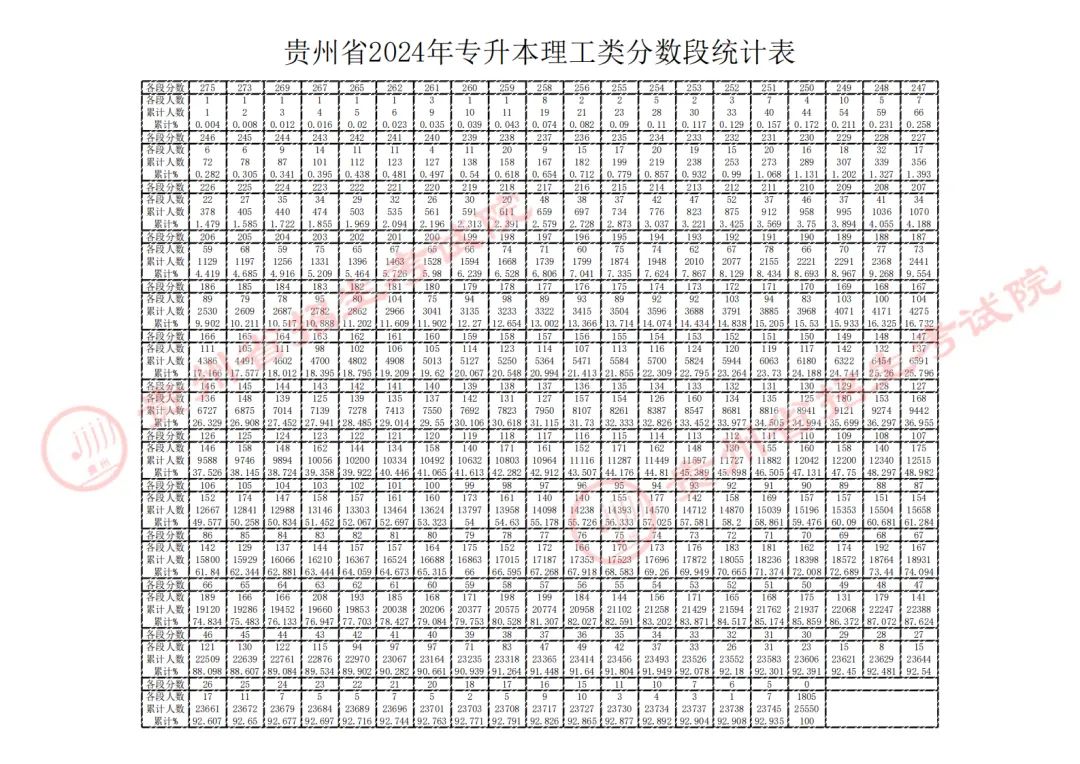 二、我省2024年普通高等学校专升本文化考试分数段统计表