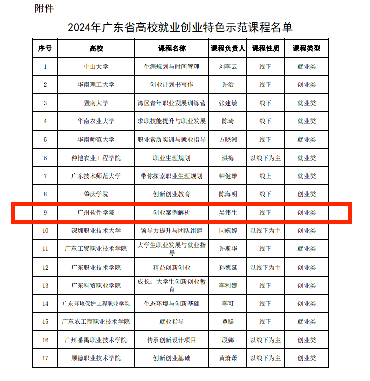 2024年6月,广东省教育厅公布了2024年广东省高校就业创业特色示范课程名单,经专家评审、领导小组会议审定、公示等程序,我校创新创业学院院长吴伟生负责的《创业案例解析》课程成功入选,这是我校第二次获得广东省高校就业创业特色示范课程荣誉的创业类课程。据悉,我校之前开设的《创业基础》《生涯规划》两门课程已成功入选2022年广东省高校就业创业特色示范课程名单。