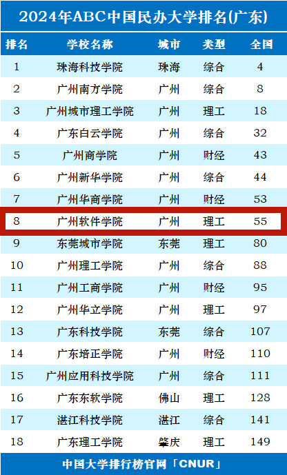 ABC中国民办大学排名,建立在中国民办大学评级结果上,选取指标侧重于人才培养、办学层次、教学建设、师资队伍等模块内的应用型二级指标,注重培养过程和结果,共性和特色指标兼顾;研究型民办高校不纳入评价对象。