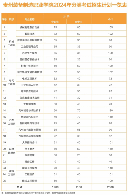 第六条 招生计划详见省招生考试院公布的2024年贵州省高职(专科)分类考试招生专业目录。