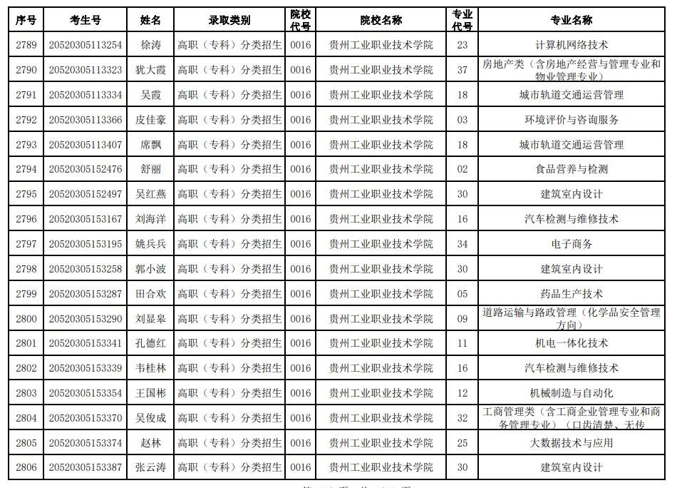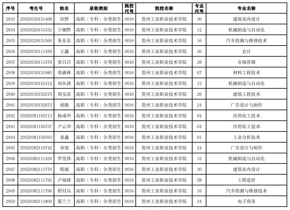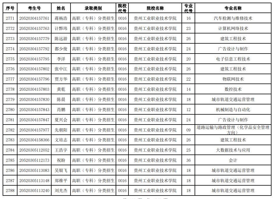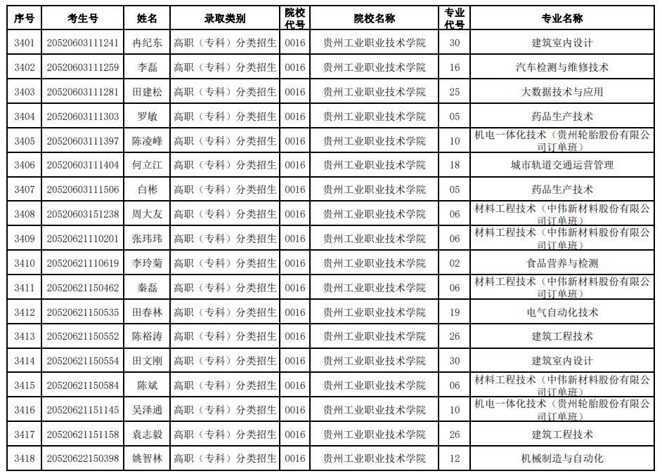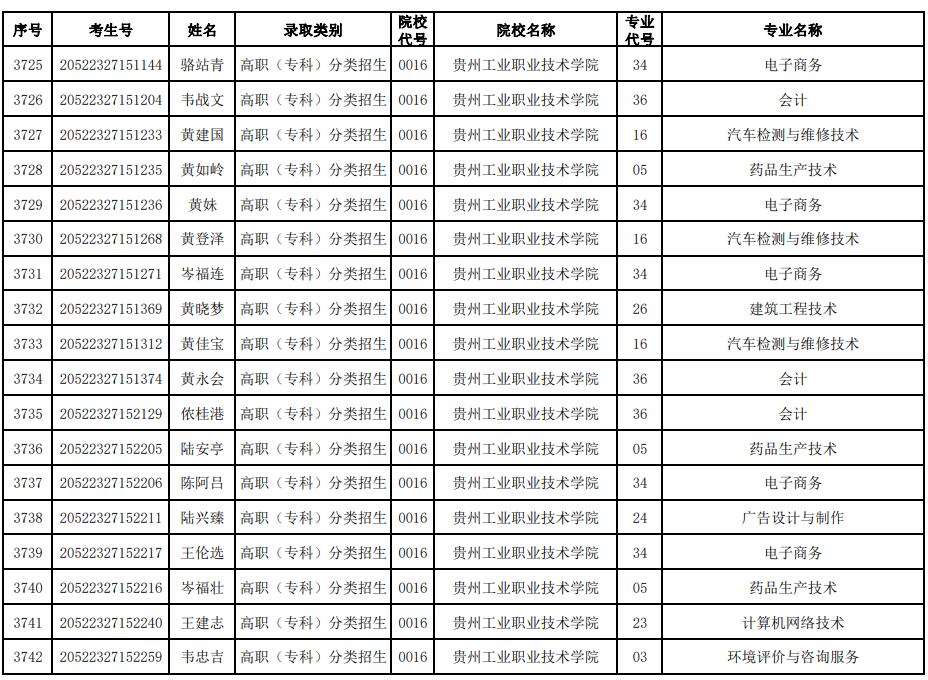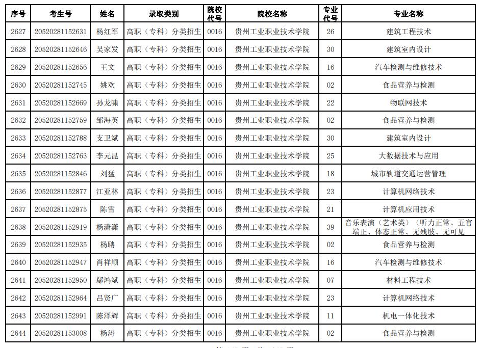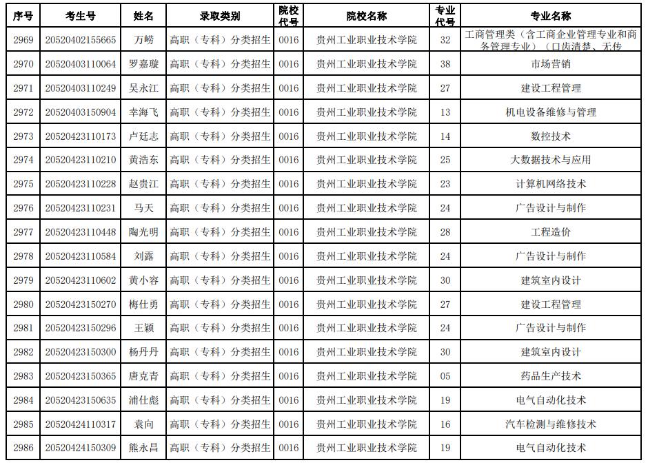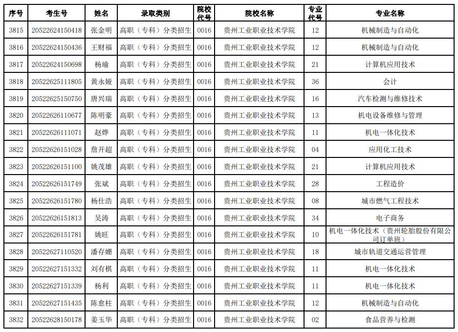 贵州工业职业技术学院2020年高职(专科)分类招生高中生预录取学生公示