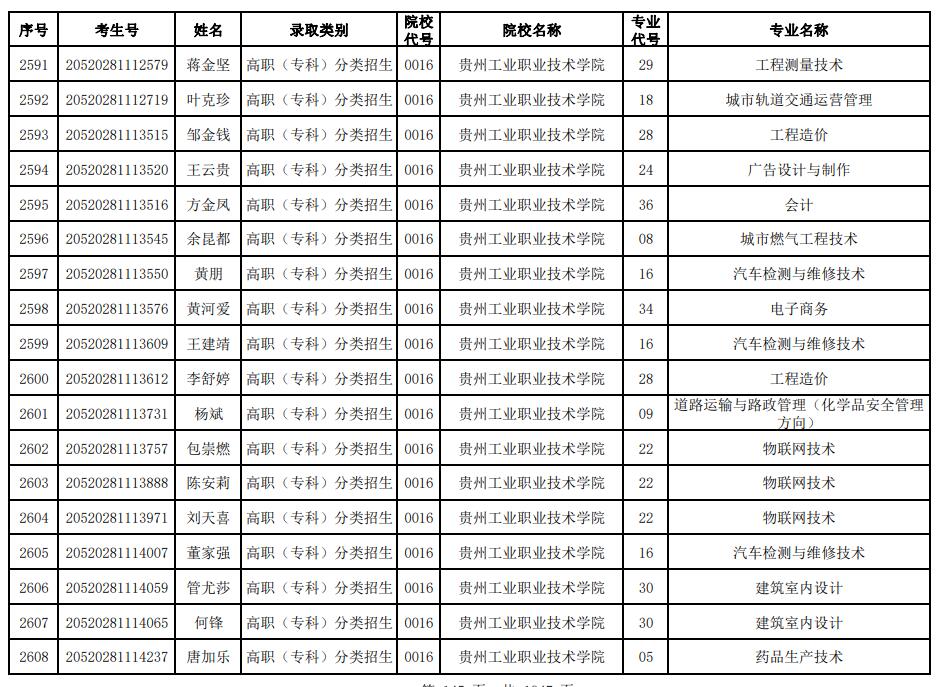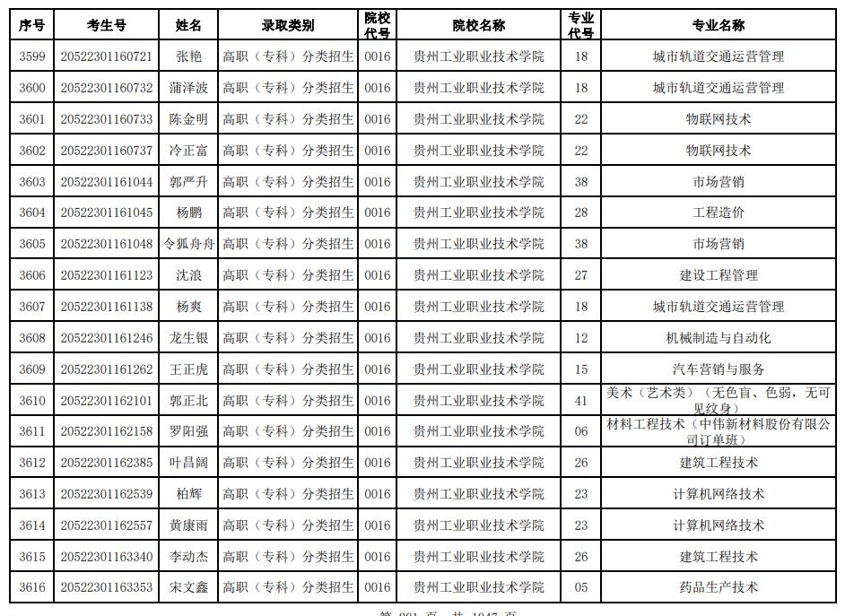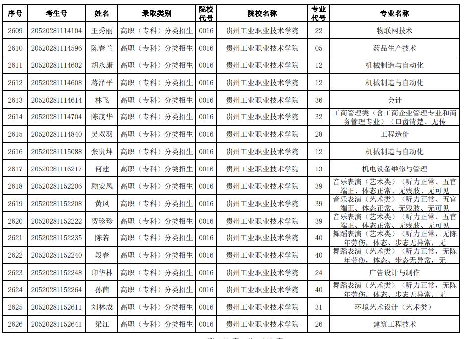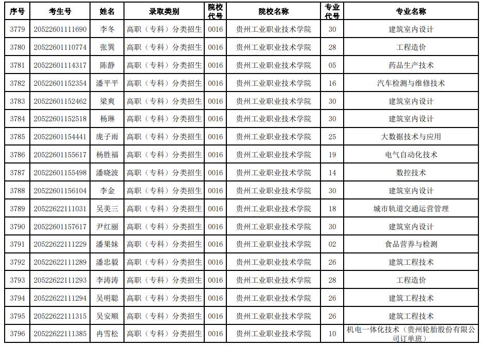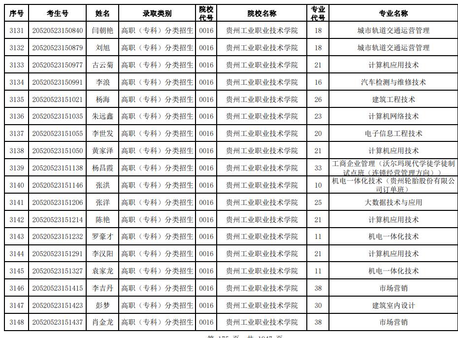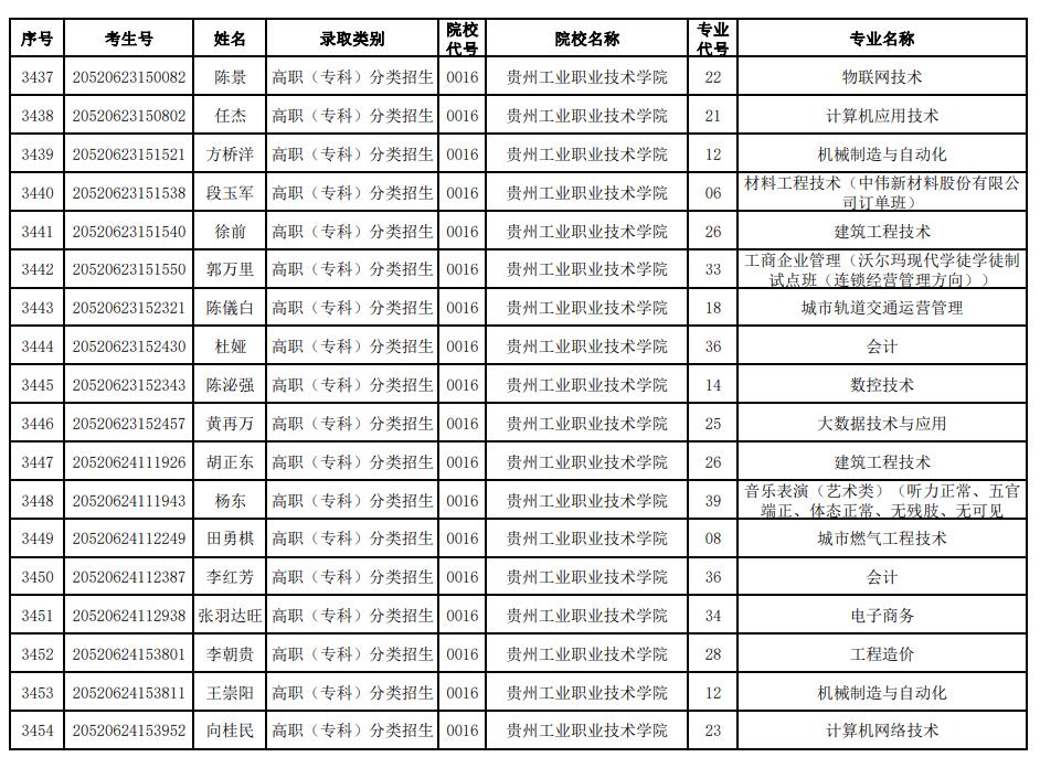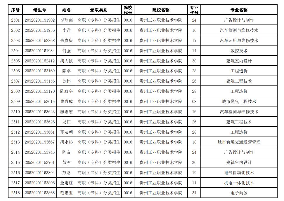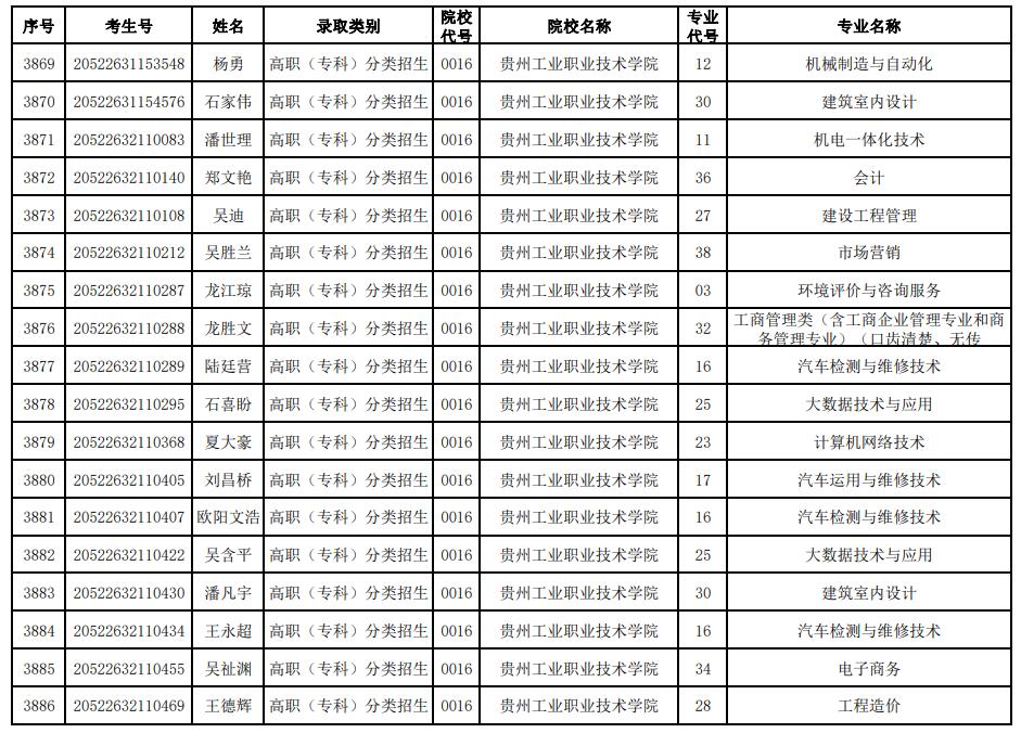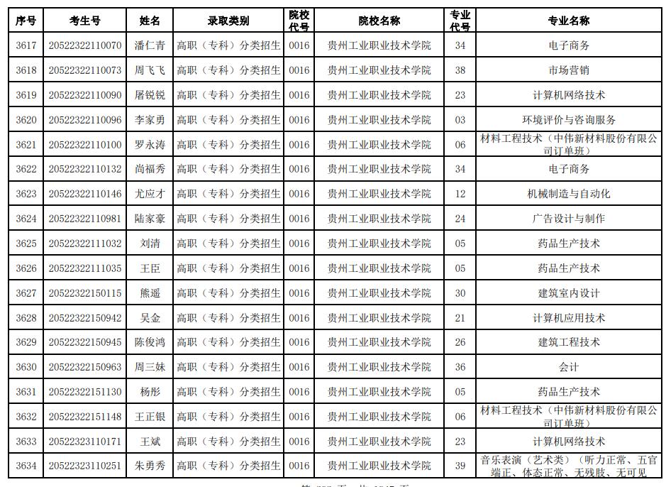 贵州工业职业技术学院2020年高职(专科)分类招生高中生预录取学生公示