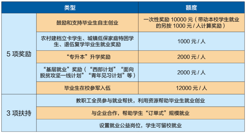 各省入学报到新生达二本分数线(含)及以上的,学校按照3500元/生的标准给予奖励;文、理科前三名分别按10000元、8000元、6000元的标准予以奖励(可重复享受3500元)。