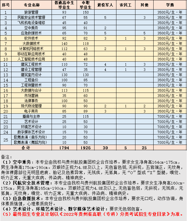 贵州职业技术学院2022年分类考试招生专业及计划