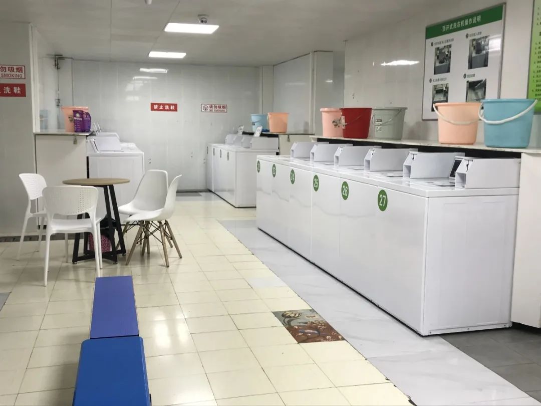 洗衣房学生卧具售卖点在一食堂前,以最优惠价格进行售卖,没有带床上用品的可自行前去选购。