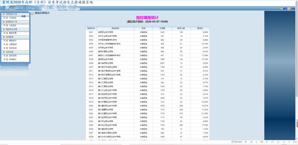 考生可在系统里查看当前招生学校填报统计,如下图: