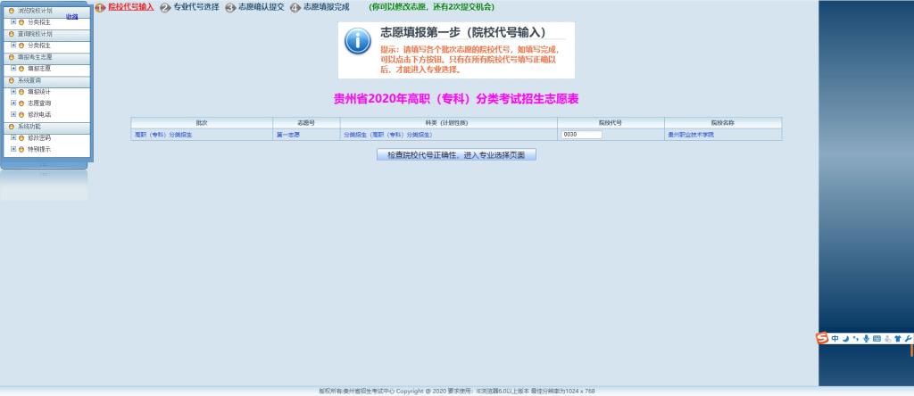 分类招生填报志愿正式开通,填报时间:5月7日00点到5月10日24点。我校志愿填报代码0030。考生可以填报一所学校志愿,六个专业志愿。