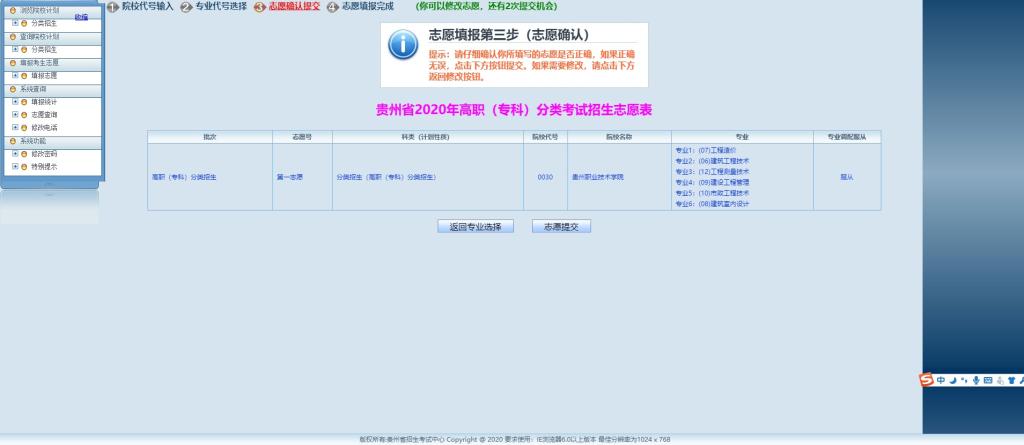 (6)考生在志愿确认页面中再次核对所填志愿,确保正确无误。。