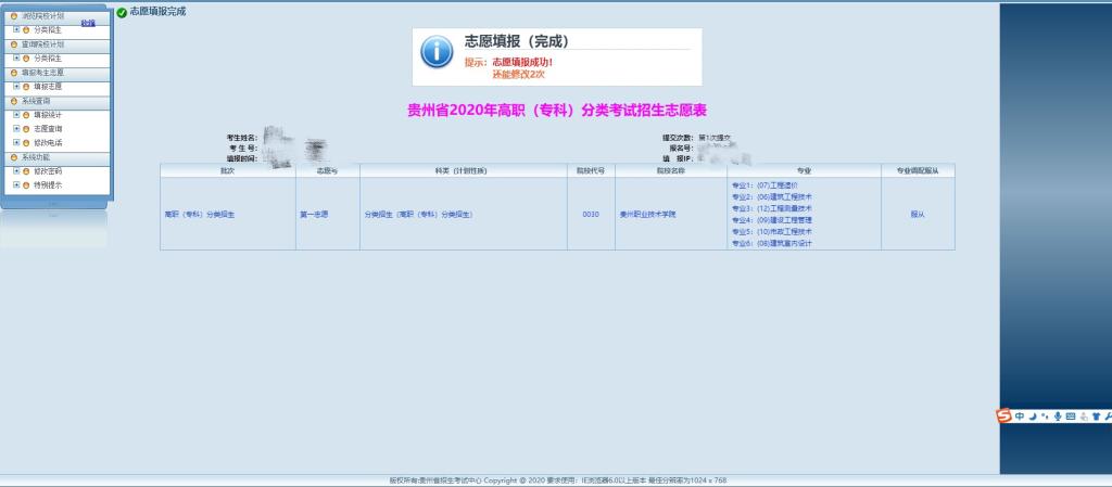 5.考生应认真细致填报志愿,核对准确后提交。在系统未关闭前,考生若发现志愿填报有误,可以进行修改,但修改不能超过2次,系统以考生最后一次提交的志愿为准。