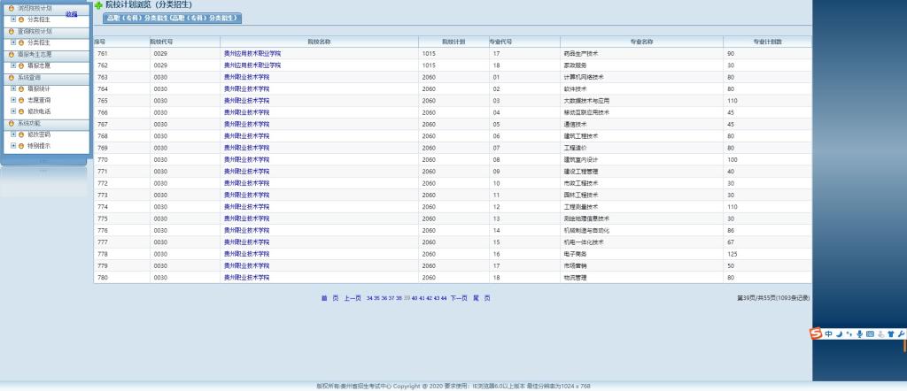 “浏览分类招生计划”列表浏览分类招生院校的计划。考生可以选择按批次查看,通过点击下方页码翻页。
