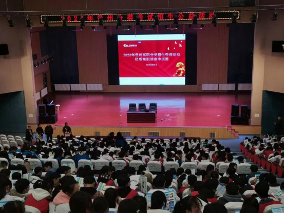 为做好我校2023年分类考试招生工作,搭建考生与我校面对面沟通的桥梁,让更多学生了解并报读我校。2023年2月底至3月初,在六盘水市及黔西南州教育局的大力支持下,我校前后分别赴六盘水市及黔西南州的部分高中学校开展分类考试招生宣传。