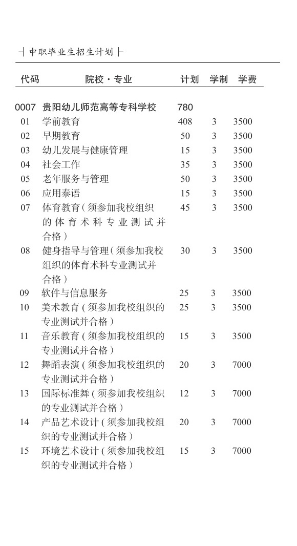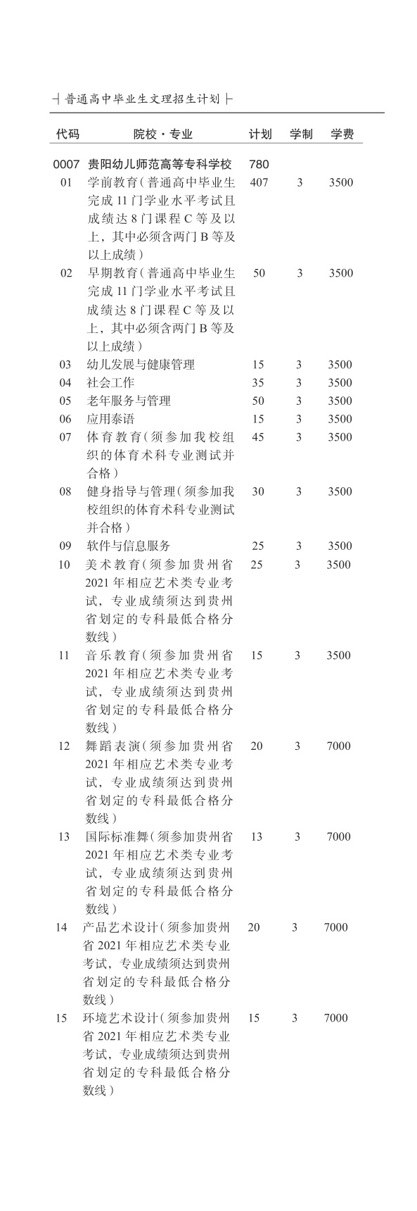 贵阳幼儿师范高等专科学校2021年分类考试招生计划