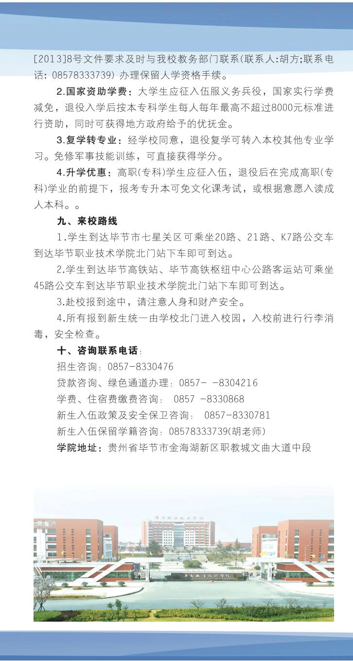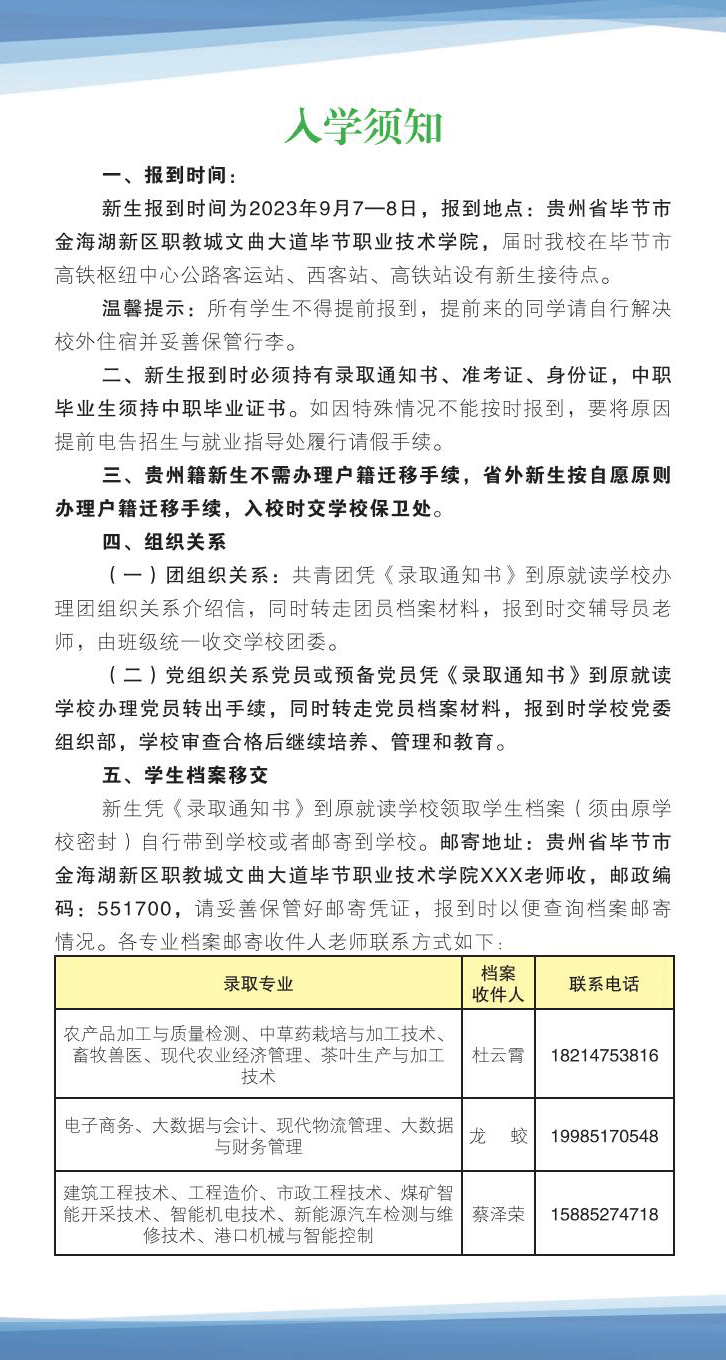 毕节职业技术学院2023年新生入学指南