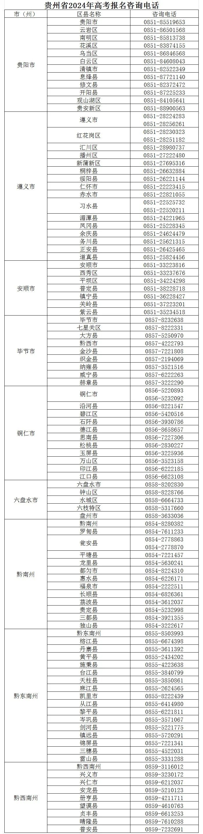 贵州省2024年高考报名咨询电话