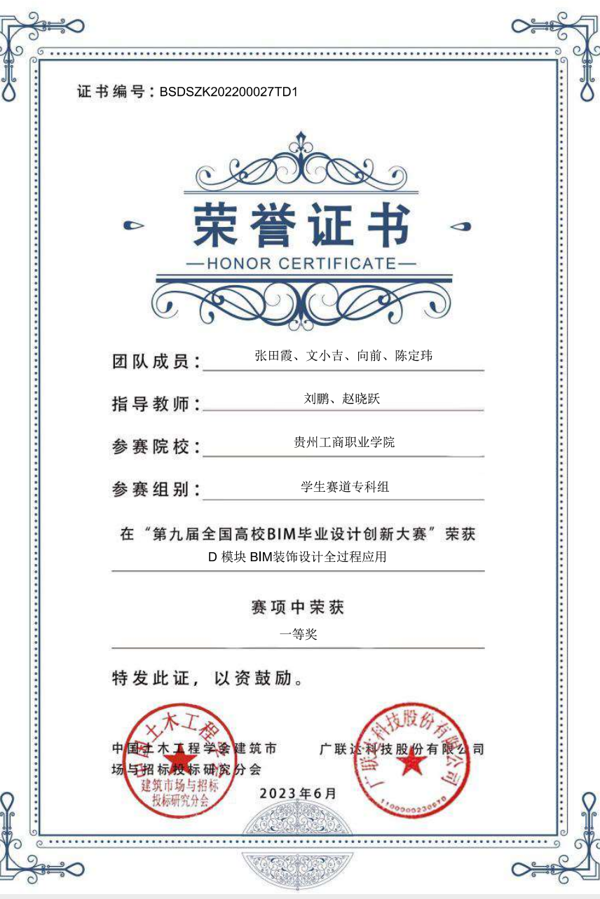 ·曾荣获贵州省大学生BIM技能建模大赛二等奖;