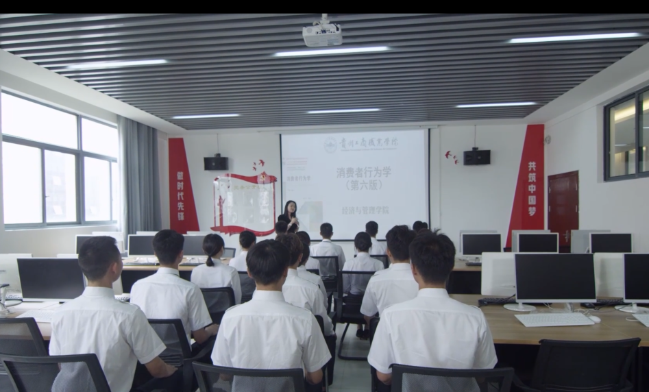 01学院介绍College introduction经济与管理学院围绕贵州省十大服务业创新工程,面向现代商贸业,聚焦中小微商贸企业(包含乡村企业)转型升级和数字化管理,培养思想政治坚定、德智体美劳全面发展,以文化为魂、技术为根、商业为力,以“数据分析、数字化管理”为共同的职业素养,具备国际化视野、“懂商贸、善营销、晓核算、精管理、通分析”能力的复合型高素质技术技能人才,助力贵州省地方经济社会发展和企业数字化转型升级。学院强化“岗课赛证创”育人模式,2023年在贵州省职业院校师生技能大赛中,市场营销赛项以90.35分的绝对优势斩获一等奖,成功卫冕省赛三连冠,打破贵州省该赛项蝉联记录。