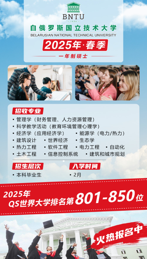 白俄罗斯国立技术大学25年QS世界大学排名801-850位现招收春季硕士专业如下