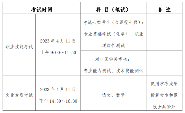 5、缴费:已确认自己在单招平台报考考试七类和报考对口医学类的考生(含免试考生和退役士兵)须在2023年3月6日9时至3月9日17时通过网上缴费的方式缴纳考试费,依据考生参加考试科目数量按照每人每科40元的标准缴费。未按规定缴费的考生,系统将视为自动放弃高职单招报考和录取资格。一经缴费因考生自身原因未参加考试及不符合报考条件的考生不退考试费。6、下载打印准考证:已通过单招平台报考并成功足额缴付考试费的考生于2023年4月4日9时至4月11日17时,登录单招平台(网址:http://hebgzdz.sjziei.com)下载并按要求打印本人准考证,认真阅读准考证注意事项。7、考试时间: