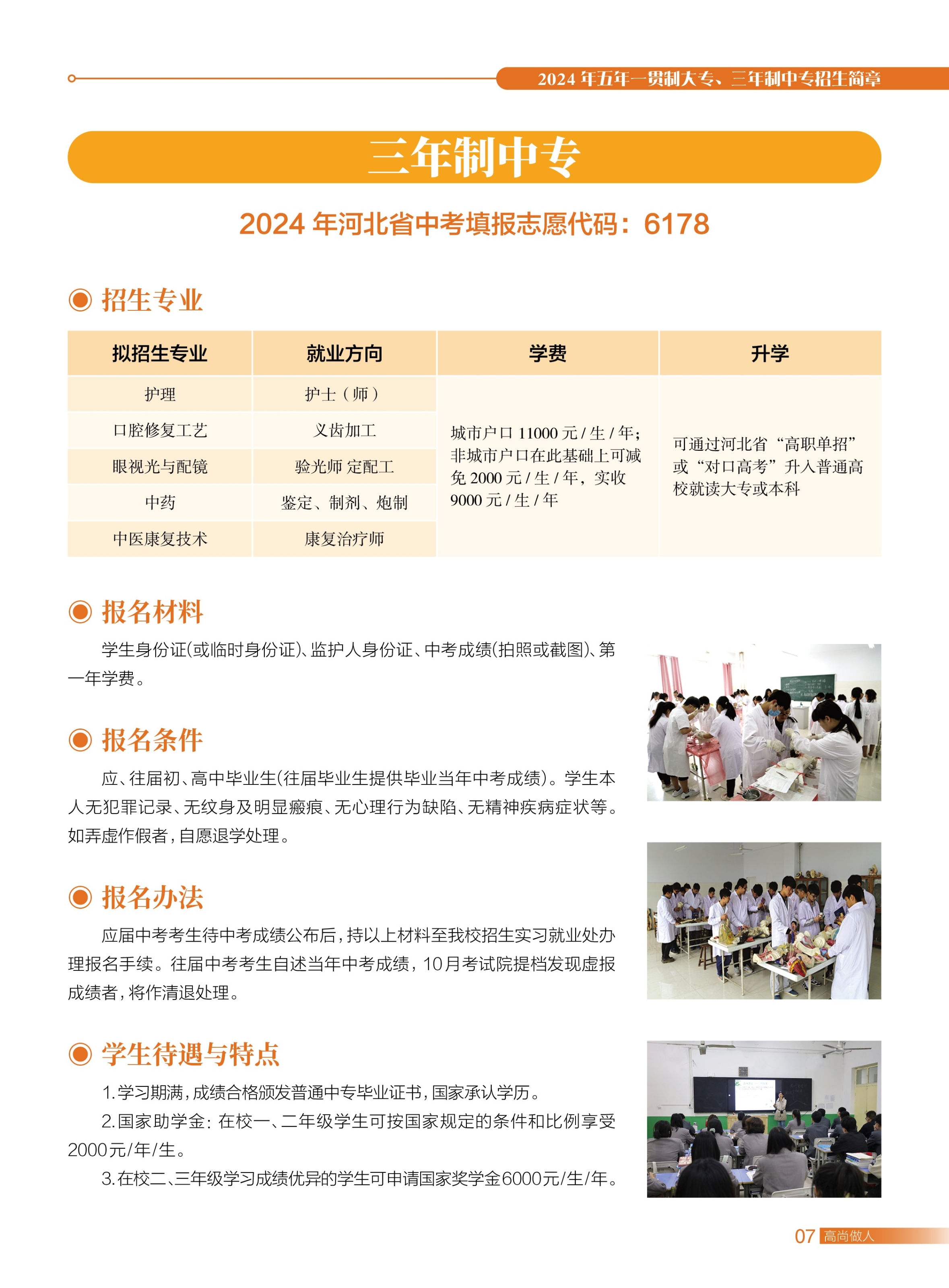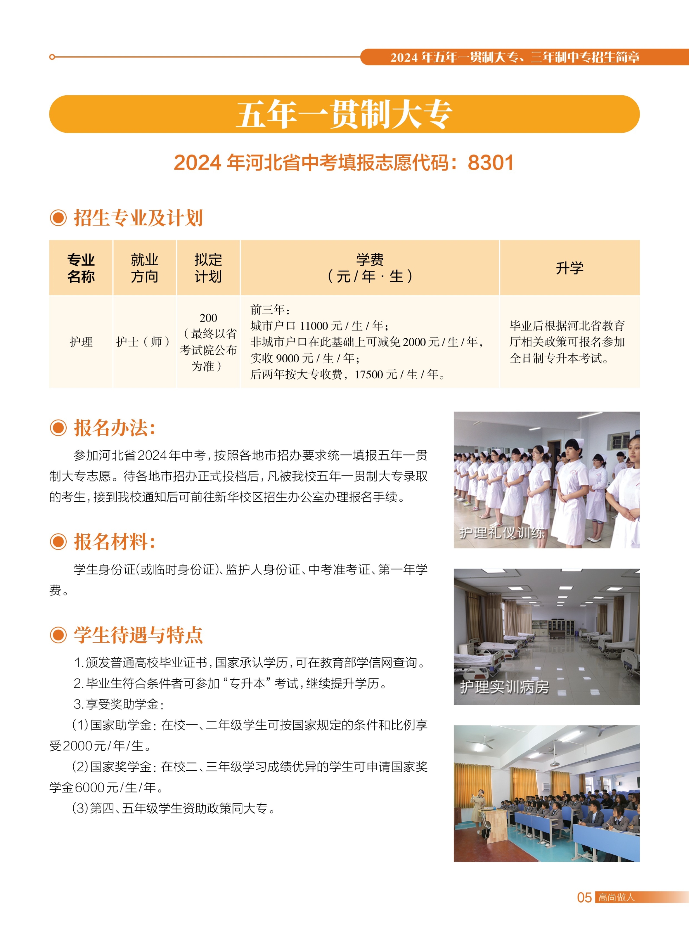 2024年石家庄医学高等专科学校五年一贯制大专、三年制中专招生简章