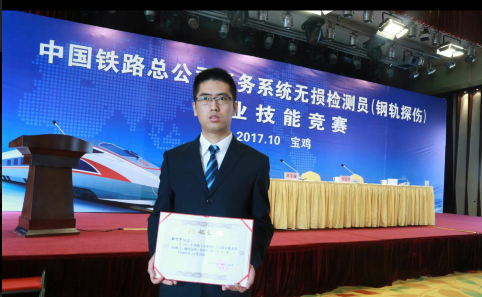 孙阳阳,专业2012届优秀毕业生,兰州铁路局银川工务段钢轨探伤车间探伤工,先后获得全国青年岗位能手、全路优秀共青团员称号及“火车头”奖章,还获得过兰州局“十大杰出青年”、劳动模范、技术能手、“感动兰铁2017年度十大人物”等多项荣誉。