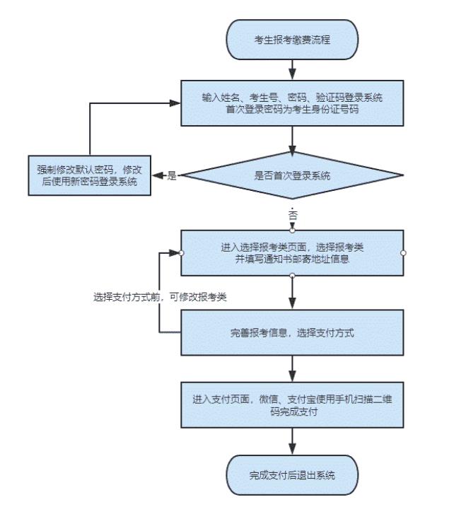 (3)考生选择考试类后进入缴纳页面,确定支付方式后,将无法修改考试类等报考信息,支付方式未确定前可返回修改。