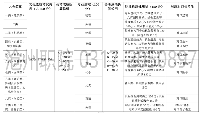 答:单招分为10大类,每一大类所考内容各有侧重。下图为2021年单招考试内容提纲,仅供参考。2022年河北省高职单招各大类实施方案尚未公布。(以上为2021年单招考试内容提纲,仅供参考。2022年的尚未公布。)