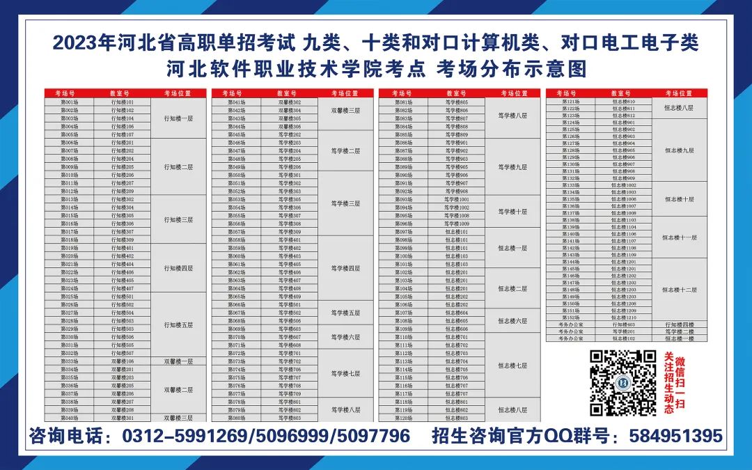 第九类第十类河北软件职业技术学院考点考场分布示意图