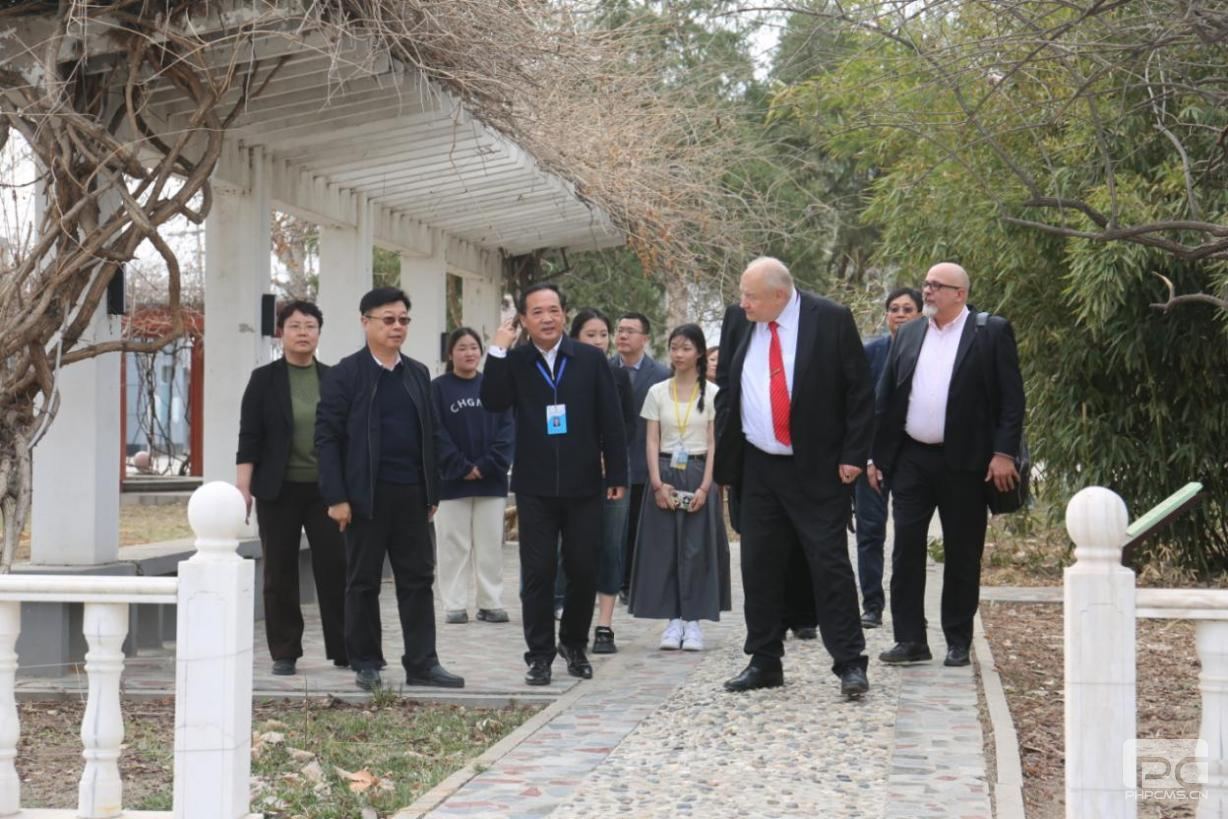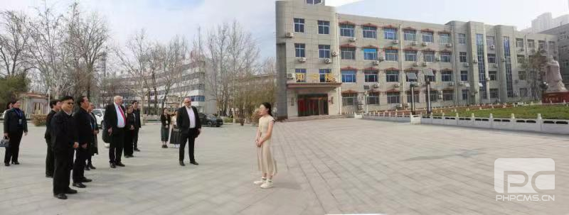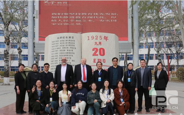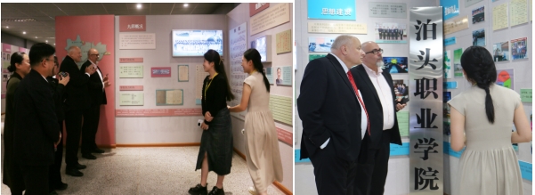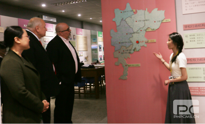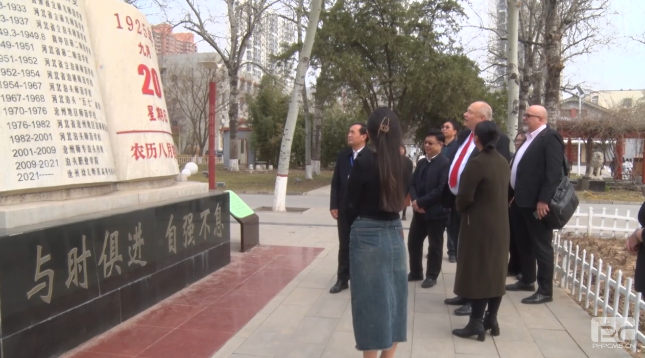 随后,刘焱校长带领来宾参观了校园。我校中外合作办学的学生代表为Jouni校长一行人介绍了学校日历碑、孔子像、校史馆。学生的英文讲解,每一个词汇和句子都如同泉水般流畅自然,流利程度令人赞叹。尤为可贵的是,这些讲解者还具有出色的幽默感,总能用诙谐幽默的方式拉近与听众的距离,让来宾在轻松愉快的氛围中了解学校历史。