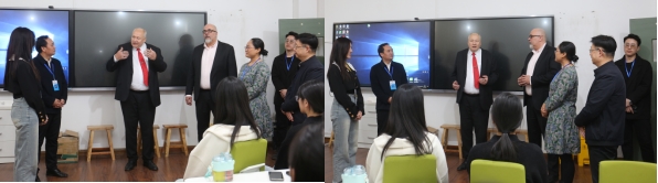 最后,Jouni 校长及同行人员来到教室探望国际班的同学们,并与同学们亲切交流互动。同学们积极参与活动,营造出热烈的交流氛围。他们纷纷表达自己的观点和想法,分享学习经验和成长经历。这样的互动活动不仅有助于提升学生的外语水平,还能拓宽视野,增强国际意识和跨文化交际能力。同学们的真诚分享,以及他们的积极参与和热情互动,让 Jouni 校长一行人深刻认识到跨文化交流的重要性与价值。这种深度互动不仅促进了语言能力的提高,更开拓了思维视野,增进了友谊,加强了双方合作的凝聚力,为未来更进一步的合作与交流奠定了坚实基础。