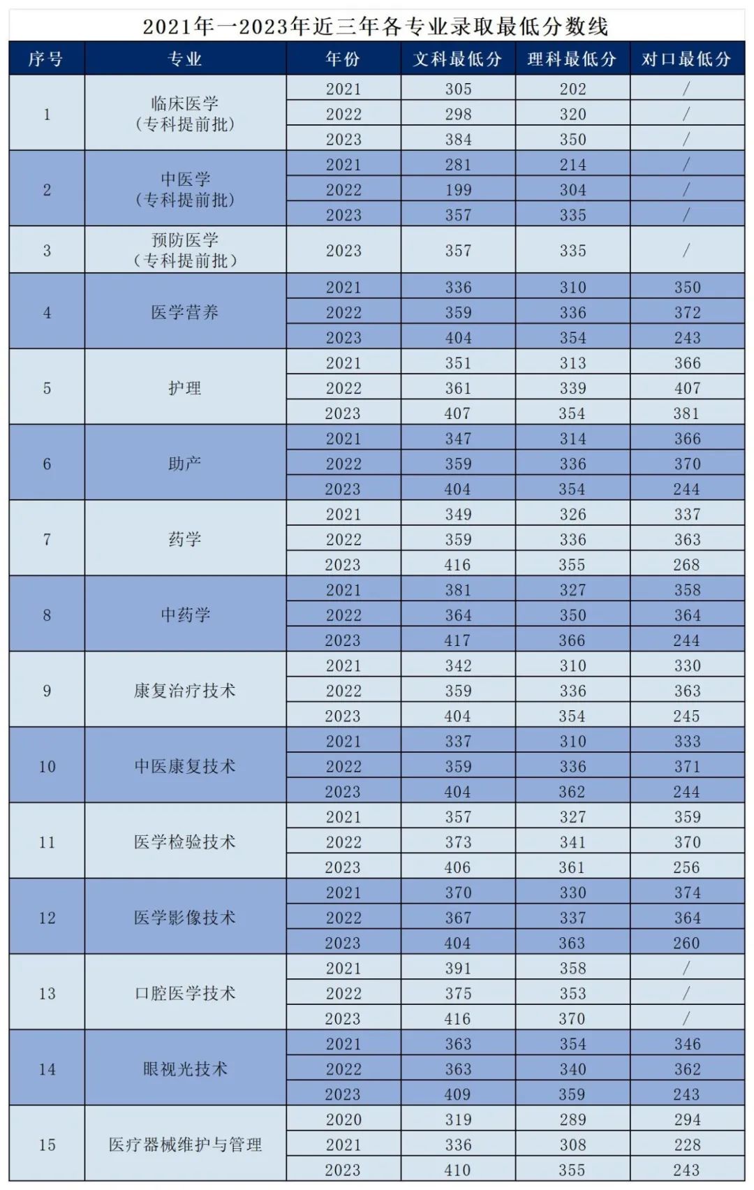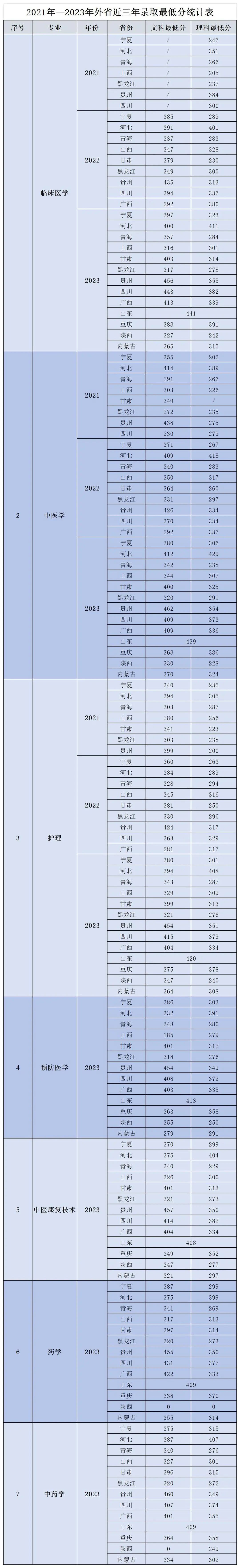 外省近三年录取最低分数汇总